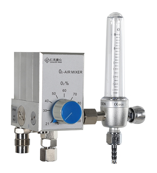 防窒息功能: 这是关键安全特性。当其中一种气源(如氧气)意外中断或压力不足时,混合器内部的机械结构会自动打开另一气源(空气)的通道,确保患者始终能呼吸到空气(21%氧浓度),避免窒息风险。