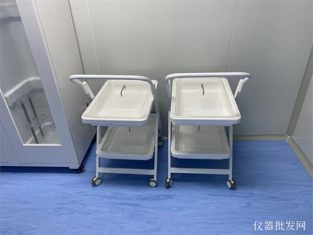 小推车二层、三层独立式设计,周转盘材料由高分子复合材料独立开模制成,车体由钢体喷塑而成,具有耐腐蚀、不沾水、车行顺畅、取放方便等优点。盘内内镜存放导航隔条使污染部分分离。多层设计使客户在使用过程中可将清洁和污染的内镜分层标明后置放,可达到高效周转,避免交叉感染等功效。