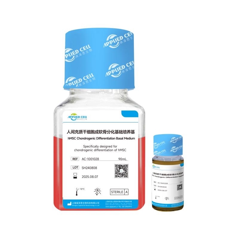 人间充质干细胞成软骨分化试剂盒是埃泽思生物(Applied Cell®)自主研发的一款用于人类间充质干细胞分化成软骨产品,可用于骨髓、脐带、脂肪等组织来源的间充质干细胞的诱导成软骨分化。