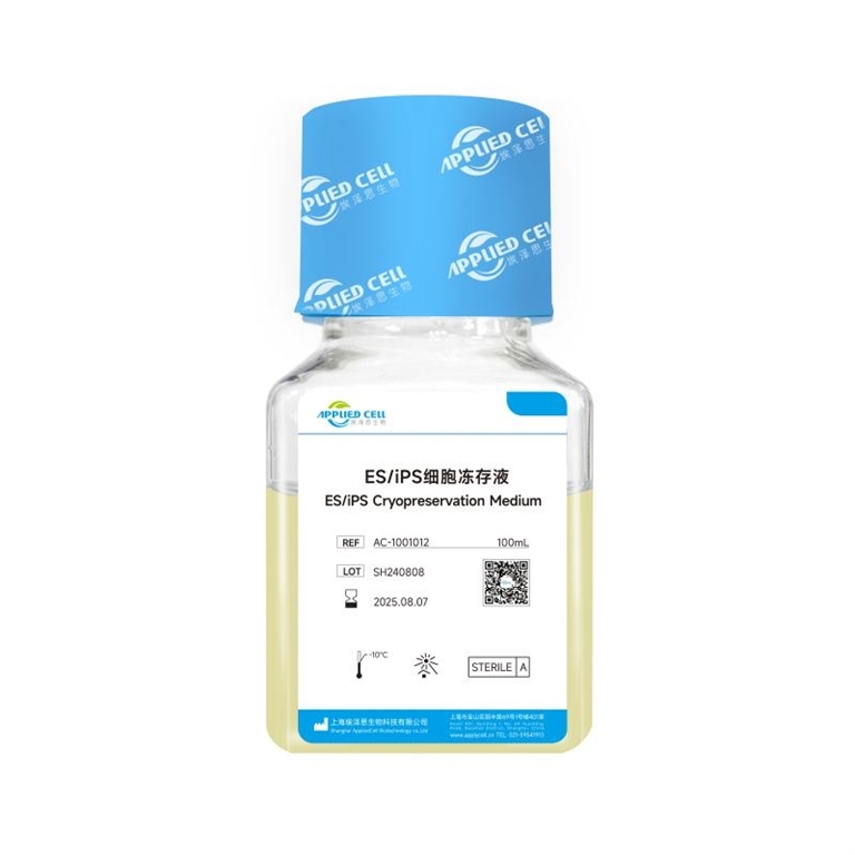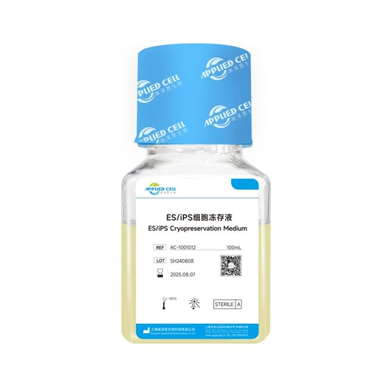 ES/iPS 细胞冻存液是埃泽思生物(Applied Cell®)自主开发的一款无血清、无需程序降温的干细胞冻存液,适用于人多能干细胞(hES/hiPS)的冻存。本产品生产过程遵循 ISO9001 体系,并符合 GMP 指导原则。